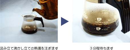 を沢山入れた大きなサーバーに一気に注いで冷却する方法。 |