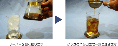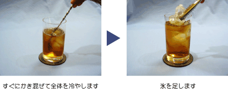 氷を入れたグラスに熱い紅茶を注いで急冷却する方法。 |