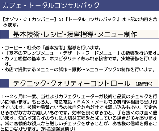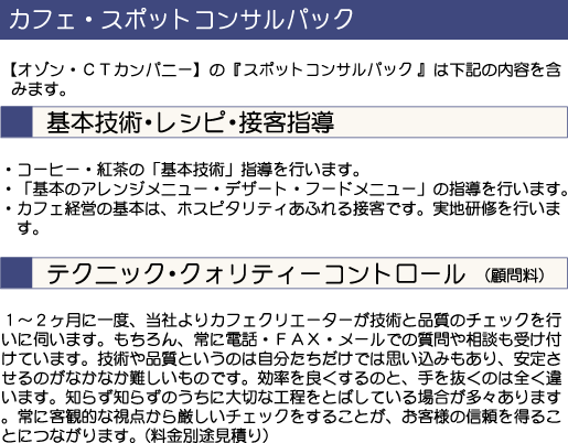 技術的な内容やレストランのカフェ部門のコンサルティングに最適です。